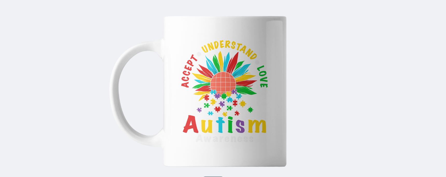 This coffee mug is a great way to show your support and understanding for people with autism. The mug features the words "Accept, Understand, Love" and is designed to raise awareness for autism. The mug is perfect for coffee lovers who want to make a difference in the world.