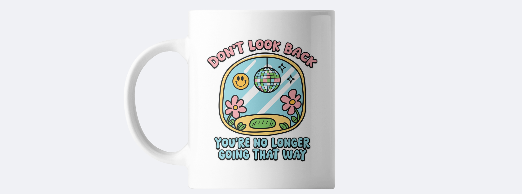 This coffee mug is a great way to start your day with a positive message. The mug reads "Don't look back you're no longer going that way" and is perfect for those who need a little motivation to keep going. The message is a reminder that you can't go back in time and you should focus on the future.
