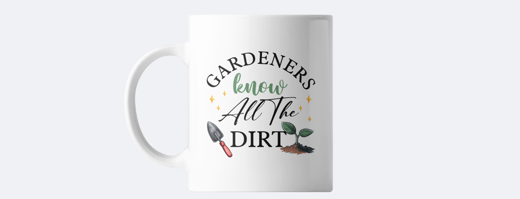 This coffee mug is a must-have for any gardener who loves to enjoy a hot cup of coffee or tea while working in their garden. The mug features the text "Gardeners know all the dirt" printed on it, making it a great gift for any gardening enthusiast.