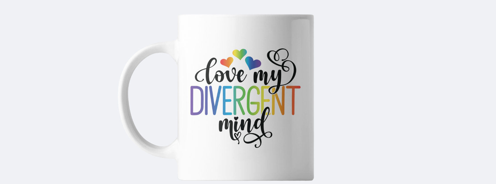 This coffee mug is a great way to start your day with a positive and uplifting message. The mug features the text "Love my divergent mind" and is perfect for those who want to add a touch of inspiration to their morning routine.