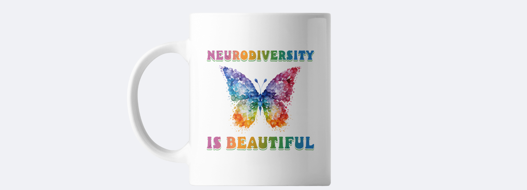 This coffee mug is a perfect way to start your day with a positive and inclusive message. The mug features the words "Neurodiversity is beautiful" printed on it, reminding you that everyone is unique and special.